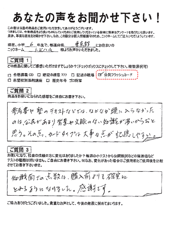 喜びの声